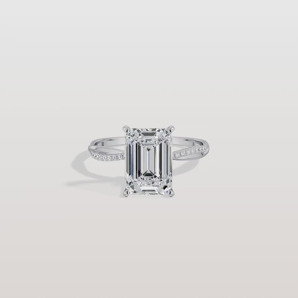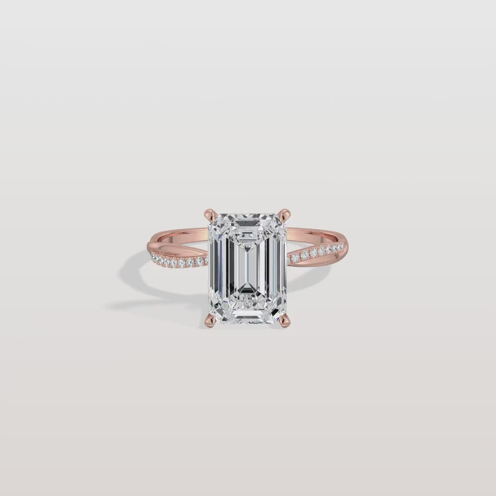 Alaya丨3CT Emeral Cut Lab Diamond Twisted Engagement Ring In Solid Gold/Platinum