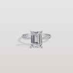 Unit price perElegant and timeless, this emerald-cut lab grown diamond ring features a captivating center stone set on a solid gold/platinum band, delicately accented with pave diamonds for added brilliance. A refined symbol of everlasting love.
