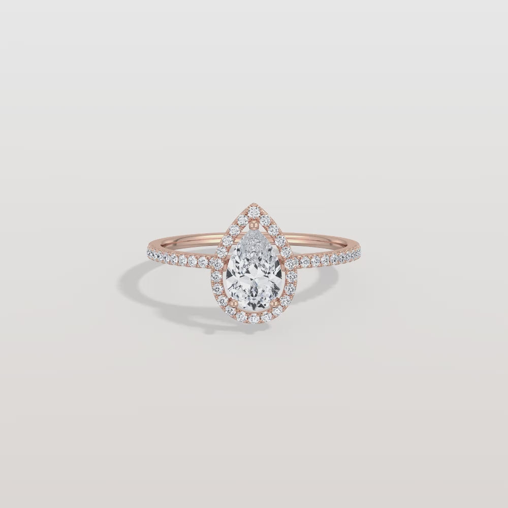 0.5CT Lab Grown Diamond Pear Cut Halo Engagement Ring In 14K Solid Gold/Platinum