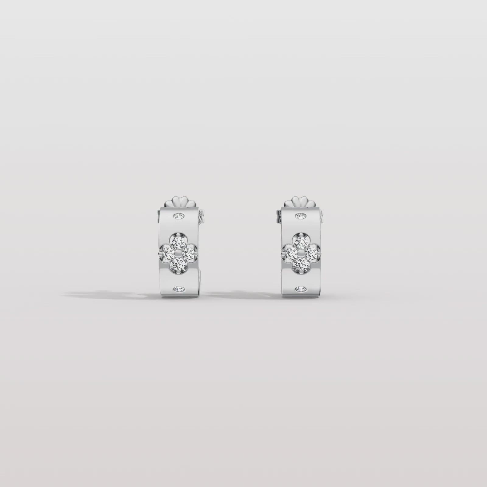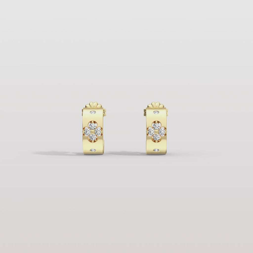 Unit price perWe make the chunky hoop earrings with D Color VVS1 Clarity 3EX Cut moissanite. Designed with a lucky four-leaf clover motif, both the hollow inner circle and sparkling moissanite outer symbolize good fortune and happiness.