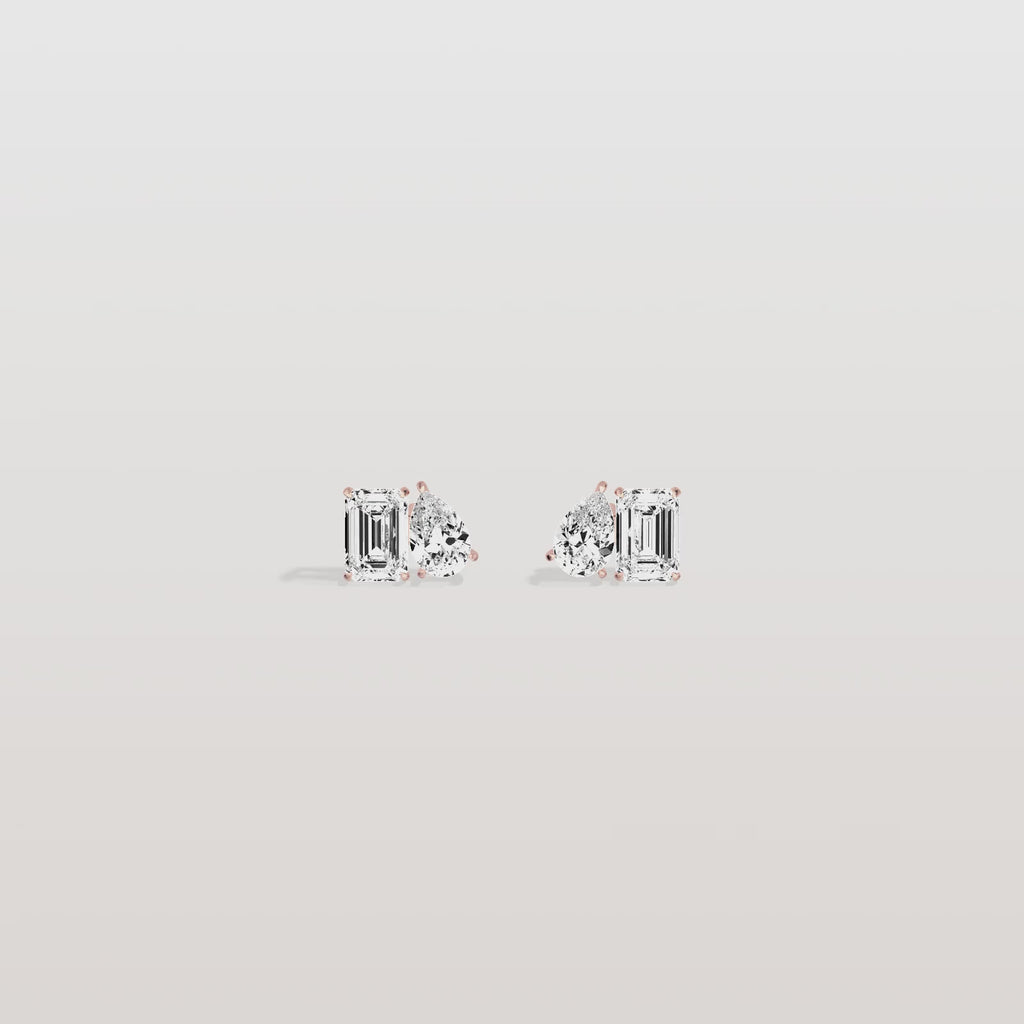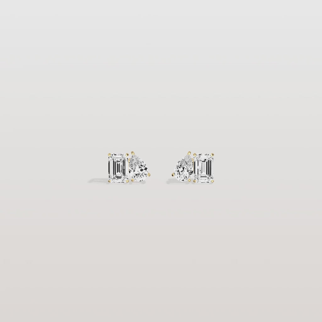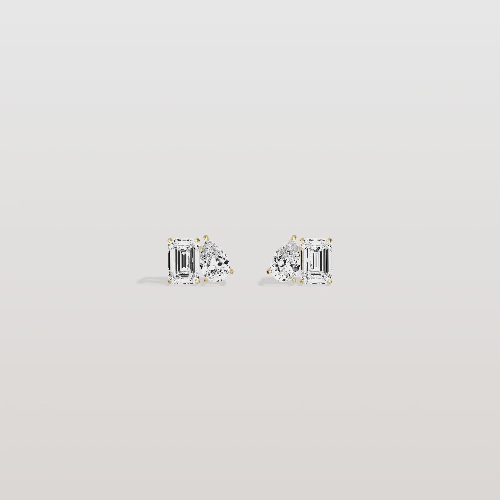 Unit price perCapture the essence of modern elegance with these captivating stud earrings. Crafted in lustrous 14K Solid Gold, each earring showcases a dazzling pair of lab-grown diamonds: 2 classic emerald cut and 2 graceful pear cut, totaling 2.6 carats of brilliance. The unique arrangement of the stones, accented by delicate gold prong, creates a captivating interplay of shapes and light.