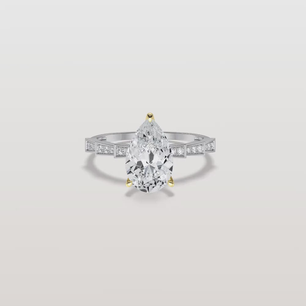 2CT Two-Tone Pave Pear Lab Grown Diamond Ring