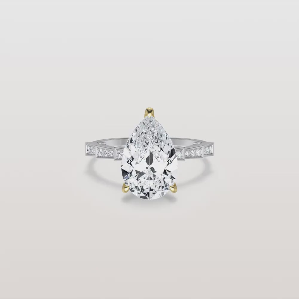 3CT Two-Tone Pave Pear Lab Grown Diamond Ring