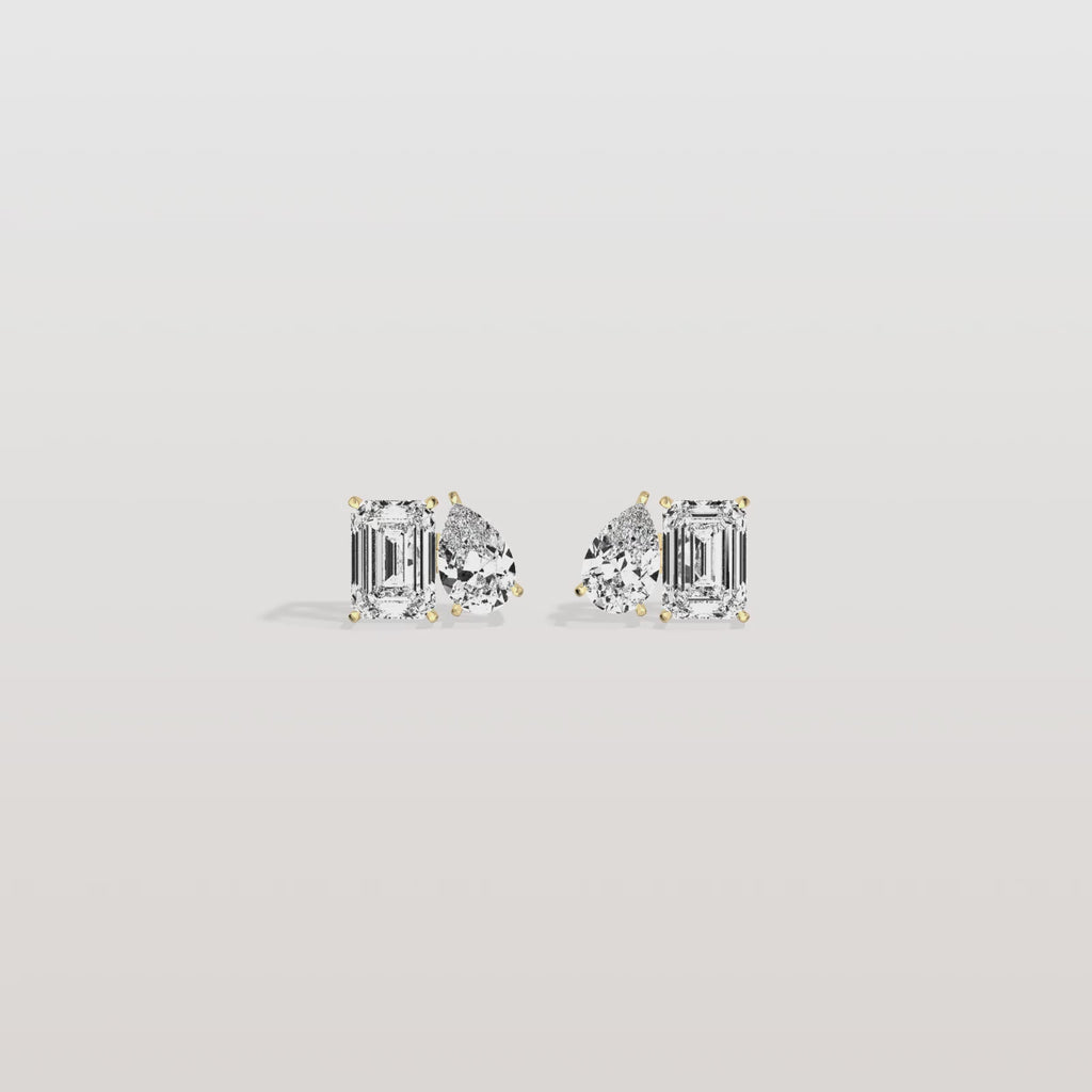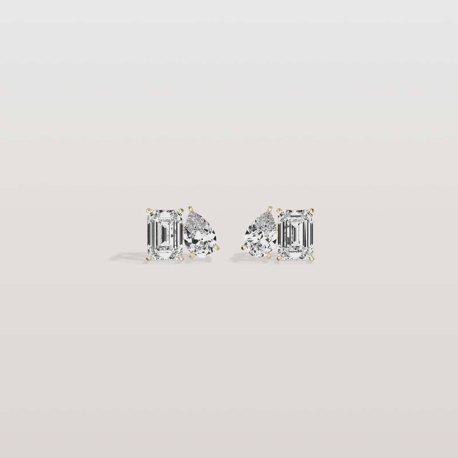 Unit price perCapture the essence of modern elegance with these captivating stud earrings. Crafted in lustrous 14K Solid Gold, each earring showcases a dazzling pair of lab-grown diamonds: 2 classic emerald cut and 2 graceful pear cut, totaling 8 carats of brilliance. The unique arrangement of the stones, accented by delicate gold beading, creates a captivating interplay of shapes and light.